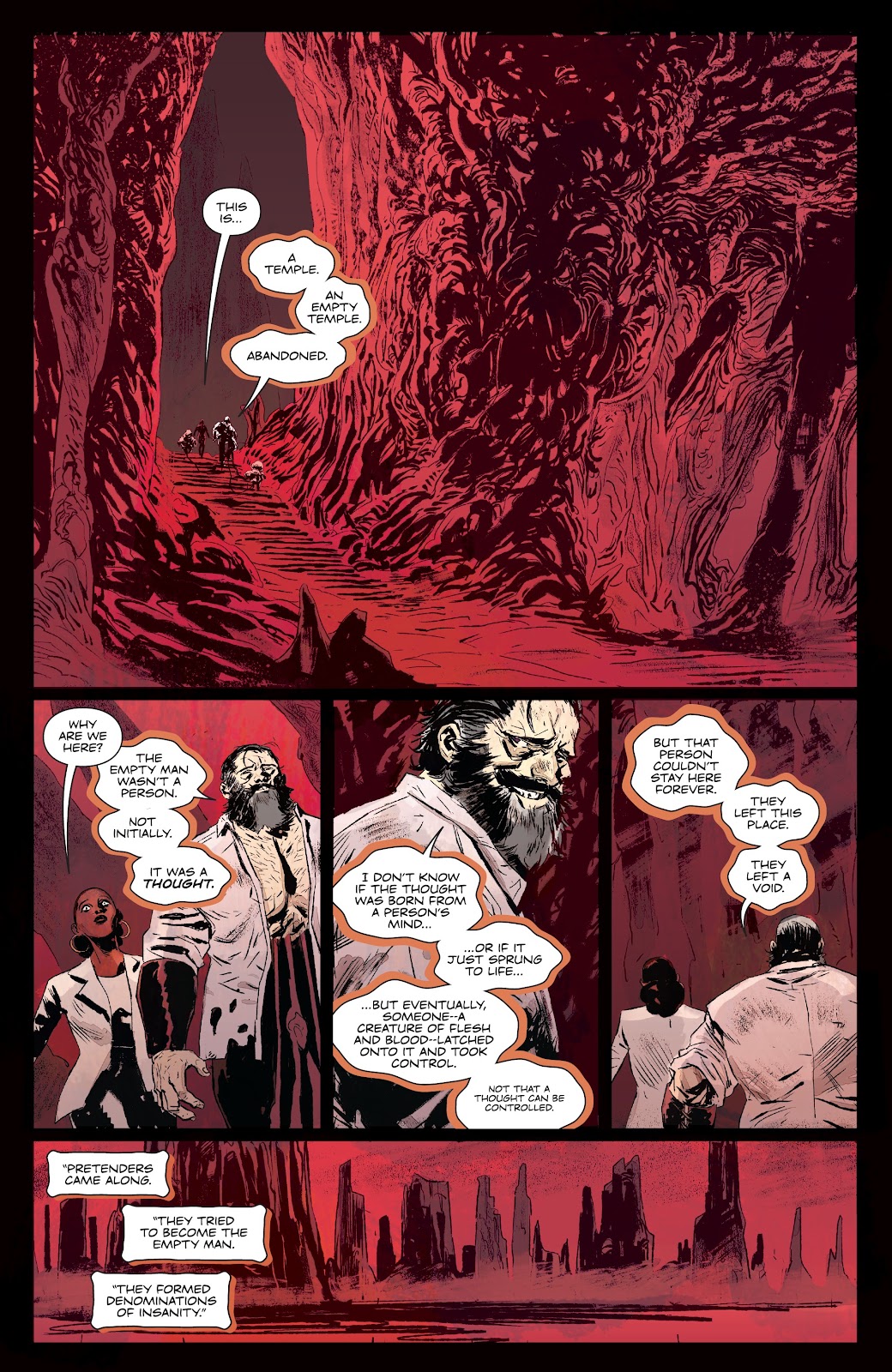 The Empty Man Creature / The shadow, also known as the cosmic entity, is a mysterious being who lives in and controls the empty, a place of nothingness predating god, death and the darkness.
